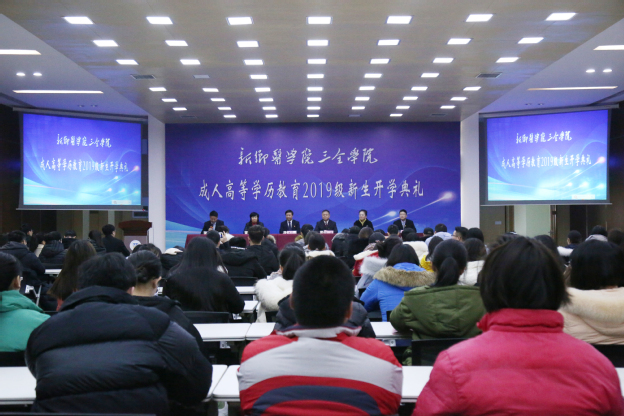 1月13日上午,我校成人高等教育2019级新生开学典礼在平原校区隆重举行。我校党委书记王志凯、院长杨捷、教育总督导毛兰芝出席,护理学院、院长办公室、继续教育学院的部门负责人及成人高等教育2019级新生代表参加。开学典礼由院长办公室主任史世锋主持。 典礼在庄严的国歌中拉开序幕。杨捷致辞,他代表学校向新同学到校学习表示热烈的欢迎和祝贺,介绍了学校的发展历史、办学特色以及学校近几年的发展状况,并对同学们提出了三点要求: 第一、回归学习本位,要始终把读书作为第一任务 我校开展成人高等教育的目的,是致力于点燃同学们不断追求上进的心火,引领向更高远的人生理想奋斗。无论是全日制教育还是我们正在开展的成人高等教育,都是让大家沉淀知识、提升自我的关键阶段。成教学生尽管已经走进社会,平时工作比较繁忙,但本质上依然是学生,既然是学生,就要做学生该做的本职工作、尽学生应尽的根本职责,就是要始终把学习作为首要任务。 第二、回归学习本位,要始终发扬勤奋拼搏的求学精神 坚忍不拔、勤奋拼搏一直是改变人生命运、成就人生梦想的“奠基石”。现在是一个“互联网+”飞速发展的时代,很多人习惯借助网络进行瞬间的知识搜索与经验获得,习惯借助键盘和各种APP来表达思想,但瞬时搜索不能够获取长久记忆,碎片化得学习也不能代替深耕细作的书本研读。希望全体新同学,扎根于目前的工作实际,在选报的专业领域内刻苦学习,牢固掌握基础理论、基础知识、基本技能,不断提升发现问题、分析问题、解决问题的实践能力,在持续积累中实现突破,让自己成为一个具有丰富知识储备和调动知识能力的大容量“云盘”,终身学习,终身进步! 第三、回归学习本位,要始终坚持做一个全面发展的追梦人 各位同学是与“中国梦”同向同行的一代,一定要让自己勇敢走出舒适区与安全区,自我加压,自我激励,做一个全面发展的追梦人。改革开放辉煌的前 40 年,你们没有机会挥毫泼墨,但同学们却是 两个一百年 建设的先行者和奋斗者,新时代正在为你们提供更为广阔的发展空间。不是每一代人都有这样的发展机遇,同学们生逢其时,应当好好珍惜,努力做出成绩,向这个滋养我们的时代交上一份满意的答卷。当前,全球发展版图正在重新构建,人类发展趋势或将被人工智能改写。未来,我们的合作对象与竞争对手将不再只是人类,还可能是人工智能或者其它不可预估的力量。但无论是变化莫测的人工智能时代,还是复杂难解的国内外竞争形势,归根到底都是人才的竞争,这就要求我们,必须从今天开始,对当今局势保持清醒的认识,不停追求进步,在激烈的竞争中脱颖而出! 随后,教师代表护理学院院长薛松梅和生物医学工程新生代表王大龙同学先后发言,分别表达了对新生的殷切希望和对未来学习生活的美好憧憬。 典礼结束后,我校邀请新乡医学院副院长王辉教授和解放军总医院第三医学中心高艳红教授进行了成教新生第一次面授讲座。