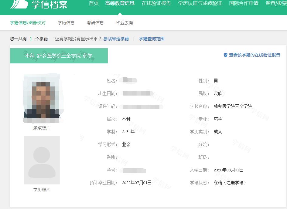 根据《新乡医学院三全学院成人高等学历教育学生学籍管理规定》文件规定,已对2021级报到新生进行学籍注册。已报到新生可以通过学信网(https://www.chsi.com.cn/)学籍学历查询栏目查询是否注册学籍,如学籍状态显示为:注册学籍,表示已报到注册。
