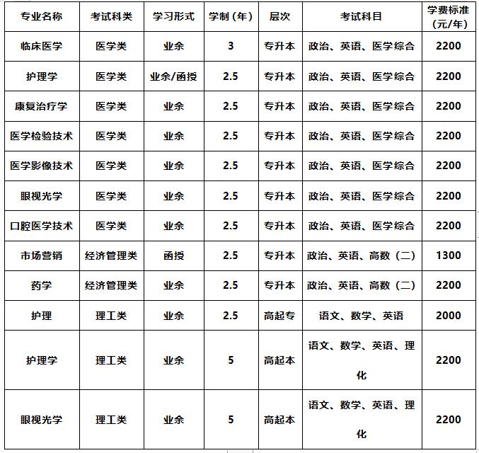 一、学校简介 新乡医学院三全学院于2003年获批举办,同年12月份,被教育部确认为独立学院。2009年2月,新乡医学院与上海宇美企业管理有限公司签订合作办学协议,推动学校发展迈入新阶段。学校现有两个校区,分别位于新乡市红旗区和平原示范区。两校区共占地1019.6亩,校舍总建筑面积为66.1万㎡,教学、科研仪器设备值1.97亿元。现有全日制本科(含专升本)、专科2个办学层次,26个本科专业及方向、13个专科专业,涵盖医、管、理、工、文5个学科领域。目前在校学生18935人;专任教师1112人。学校秉承“全面适应社会需求,全面实施素质教育,全面培育医学英才”的办学指导思想,坚持“建设地方性、高水平、有特色、应用型的新型高等医学院校”的发展目标,坚定“转型发展、内涵发展、特色发展”的中期发展战略,紧握“健康中国”“健康中原”战略与教育领域综合改革的重要机遇,不断创新医学教育实践,加快医学教育由“以治疗为中心”向“以健康为中心”的转变,设置了以现代医疗服务为核心,现代医疗装备与技术、生物医药、养老与康复、现代健康与医疗管理协同发展的覆盖生命全周期的5大学科专业集群。办学十九年来,先后培养了48660名优秀毕业生,已逐步成长为一所特色鲜明、优势突出的新型医学高等院校,积极为地方经济社会发展提供人才保障和智力支持。 2022年,我校将继续面向河南省各地市进行招生。开设高等学历继续教育专升本层次临床医学专业,学制为3年;专升本层次护理学、康复治疗学、医学检验技术、医学影像技术、眼视光学、口腔医学技术、药学、市场营销等8个专业,学制为2.5年;开设高起本层次护理学、眼视光学等2个专业,学制为5年;高起专层次护理专业,学制为2.5年。 二、报考条件 1.遵守中华人民共和国宪法和法律。 2.身体健康,生活能自理,不影响所报专业学习。 3.报考高中起点升本科或高中起点升专科的考生应具有高中文化程度。 4.报考专科起点升本科的考生必须是已取得经教育部审定核准的国民教育系列高等学校、高等教育自学考试机构颁发的专科毕业证书、本科结业证书或以上证书的人员。 5.报考临床医学专业的人员,应当取得省级卫生行政部门颁发的相应类别的执业助理医师及以上资格证书或取得国家认可的普通中专及以上相应专业学历;或者县级及以上卫生行政部门颁发的乡村医生执业证书并具有中专学历或中专水平证书。 6.报考护理学专业的人员应当取得省级卫生行政部门颁发的执业护士证书。 7.报考医学门类其它专业的人员应当是从事卫生、医药行业工作的在职专业技术人员。 8.考生报考的专业原则上应与所从事的专业对口。 9.考生报考时必须填报个人真实信息(通讯地址和联系方式),以便学校及时联系。 10.具体条件按照国家教育部及河南省教育考试院的有关成人教育招生规定执行。 三、报考流程 1.网上报名:考生请于9月初(以河南省教育考试院公布的时间为准)登录河南省教育考试院网站(http://www.haeea.cn/),进入“河南省成人高校招生考生服务平台”了解我省疫情防控要求和成人高校招生政策和规定,阅读签订《河南省2022年成人高校招生考生承诺书》后进入网上报名阶段。考生需选择信息审核确认点,并按照系统的提示和要求,填写个人信息,选择报考层次、学校、科类、专业等信息(仅可填报一所学校的一个专业)。 备注:报考学生需谨记报名账号及密码。 2.资格审查及确认:考生需按照网页提示关注“河南省教育考试院”微信公众号,并绑定微信动态密码小程序。按系统提示及要求完成“本人图像照片、身份证及其它相关材料上传”等操作,核对无误后提交审核。根据微信公众号通知,如需修改或完善相关信息,请补充材料,重新提交等待审核。 备注:提交信息后将无法修改报名信息。具体审查流程以河南省教育考试院发布的招生报名工作的通知要求为准。 3.网上缴费:审核通过后,考生须尽快在线缴费完成报名手续。 备注:审核不通过,无报考资格。 3.打印准考证:考生可于考前一周内访问登录“河南省成人高校招生考试服务平台”,自行打印准考证。 4.考试科目:为全国统考科目,命题范围不超出教育部制定的《全国成人高等学校招生复习考试大纲》所规定的内容。 5.参加成人高考考试:参加全国成人高校统一招生考试,考试时间为2022年10月下旬(以河南省教育考试院公布的时间为准)。专科起点升本科的考生,医学类专业考试科目为政治、外语、医学综合(包括生理学、人体解剖学、诊断学和外科学总论),经济管理类专业考试科目为政治、外语、高数(二);高中起点升专科的考生,考试科目为语文、数学、英语;高中起点升本科的考生,考试科目为语文、数学、英语、理化。 6.成人高考录取:考生可于12月初登录河南省教育考试院查询录取结果,未被录取的考生可在规定时间内重新网上填报志愿。 备注:各阶段流程及时间以河南省教育考试院通知为准。 四、加分政策 年满25周岁(1997年12月31日前出生)以上考生、少数民族考生、河南省内苏区县、山区县(市)、贫困县考生及其他符合加分政策的考生可增加20分投档,增加投档分数不可累积。 备注:具体政策以河南省教育考试院发布的招生报名工作的通知要求为准。 五、录取规则 录取工作实行“学校负责、招办监督”的录取管理体制,即在符合